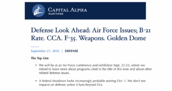 On today’s Look Ahead program, sponsored by HII, Byron Callan of the independent Washington research firm Capital Alpha Partners joins Defense & Aerospace Report Editor Vago Muradian to discuss the implications of what could be a prolonged government shutdown should President Trump and congressional leaders not be able to strike a deal; the president’s shift on Ukraine and whether Europe can deter Russia without the United States; prospect of military action against Venezuela and drug operations in Latin America, and how criminal organizations could respond against the United States and its interests; takeaways from the Air Force Association’s annual Air, Space & Cyber conference and tradeshow; and a look at the week ahead.